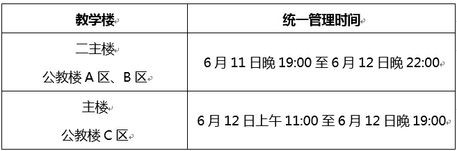 統一管理期間,除考生及監考人員外,其他人員一律不得入場,請各教學單位提前安排好相關教學工作。